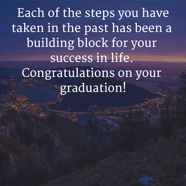 Your graduation is certainly a great achievement, but that is nothing compared to what life has in store for you in the next challenges and opportunities to come in your way. Congratulations!