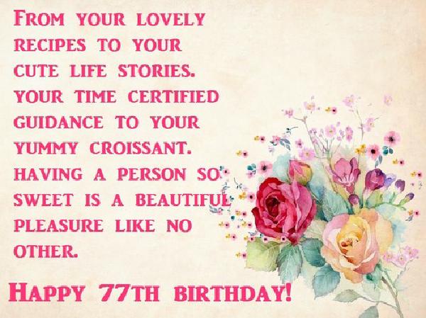 On this special day, may you be surrounded by love, laughter, and the joy that comes with celebrating 77 incredible years!